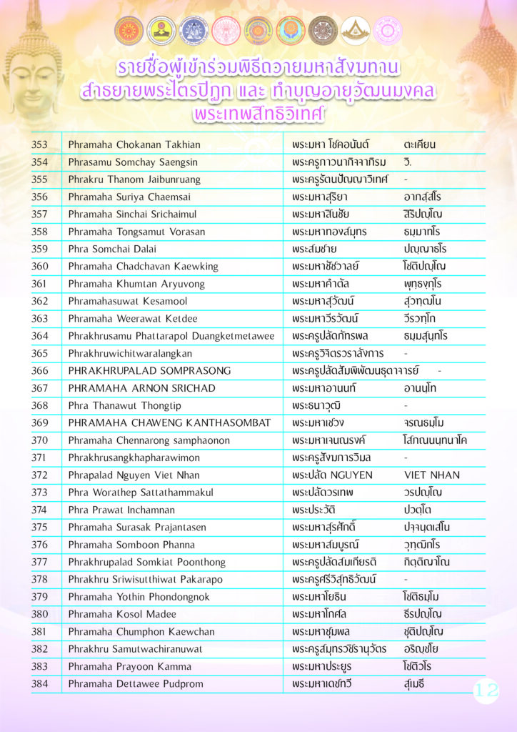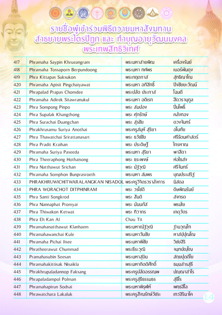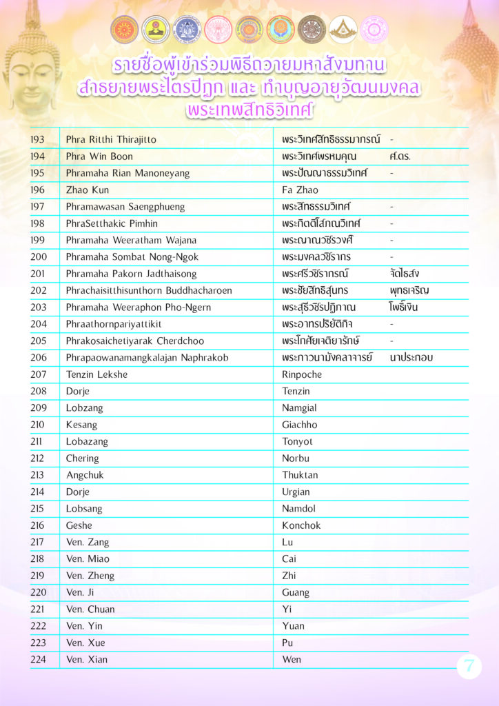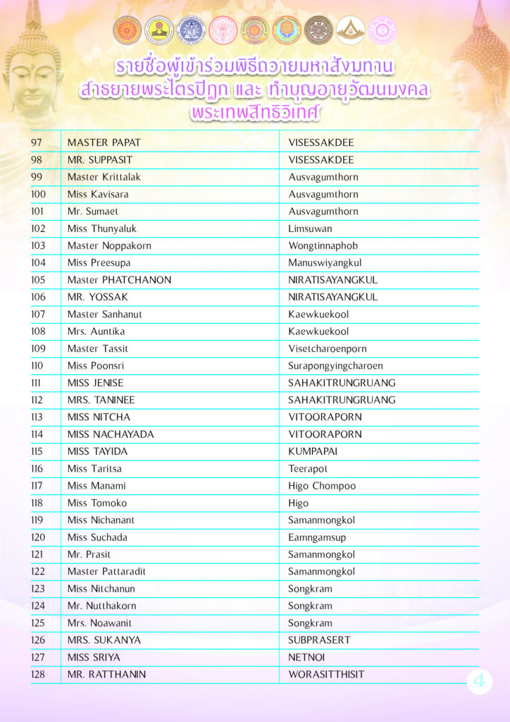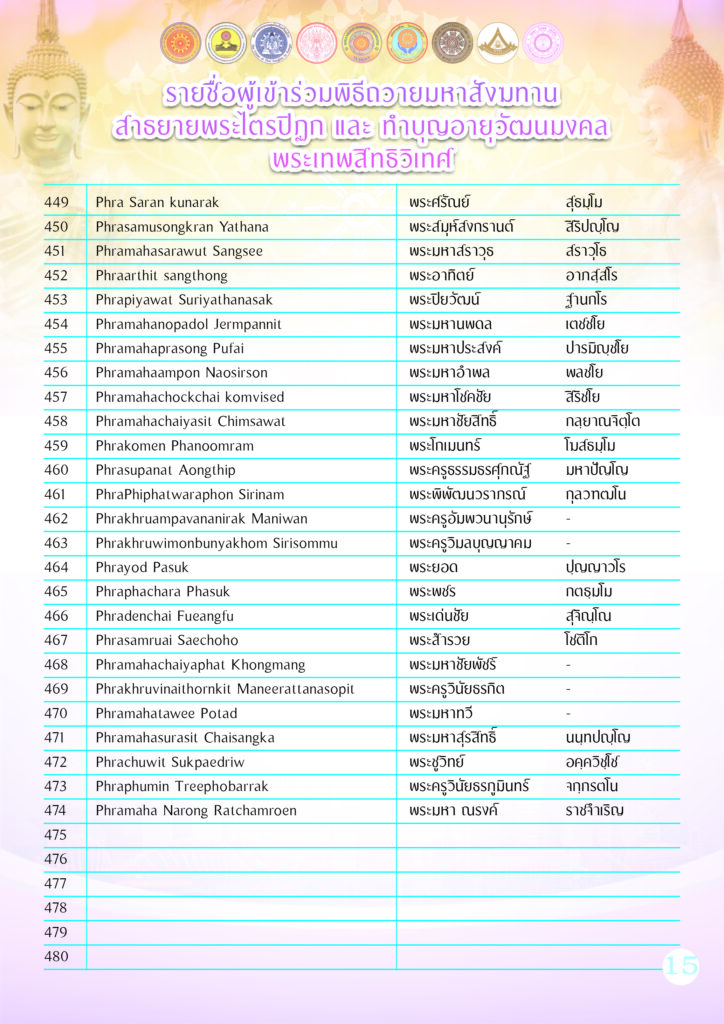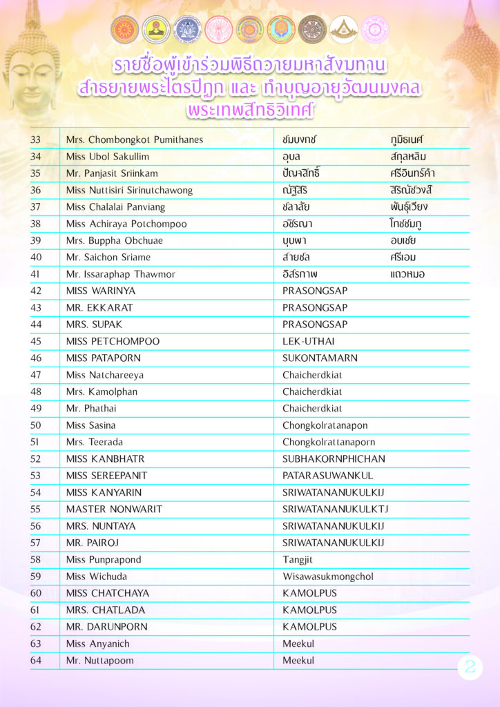 รายนามคณะพระเถรานุเถระและคณะอุบาสกอุบาสิกา ผู้ได้แจ้งความจำนงลงทะเบียนเข้าร่วมพิธีถวายมหาสังฆทานแด่พระภิกษุนานาชาติจำนวน ๓๐๐ รูป ณ หอประชุม Suntec Convention Center Hall 404 วันที่ ๑๓ พฤษภาคม พ.ศ. ๒๕๖๖ ตั้งแต่เวลา ๐๙.๐๐ น. เป็นต้นไป